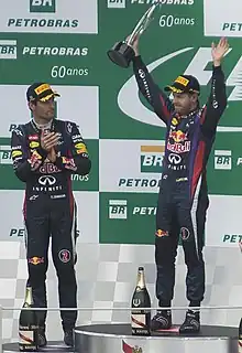 La Marele Premiu al Braziliei, Red Bull Racing a devenit pentru prima dată campioană al constructorilor după ce Sebastian Vettel și Mark Webber au terminat 1–2 în cursă, suficient pentru a nu mai putea fi ajunși de McLaren și Ferrari. Făcând acest lucru, Red Bull a devenit prima echipă austriacă care a câștigat Campionatul Constructorilor de Formula 1. Christian Horner a declarat că obiectivul principal a fost atins și că acum scopul său rămas era să câștige Campionatul Piloților și „să pună cireașa pe tort”. În cursa finală de la Abu Dhabi, Sebastian Vettel a câștigat cursa și Campionatul Piloților de Formula 1. Red Bull a încheiat anul cu un total de 9 victorii, cinci fiind pentru Sebastian Vettel și patru pentru Mark Webber. Red Bull a obținut un total de 9 victorii, 5 ale lui Vettel și 4 ale lui Webber, 15 pole position-uri, 10 pentru Vettel și 5 pentru Webber. Echipa a marcat șase cele mai rapide ture, trei de către Vettel și trei de Webber. Horner a lăudat, de asemenea, sportivitatea ambilor piloți, declarând că s-au comportat într-un mod bine ordonat și educat.[31]
