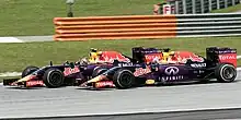 A fost primul sezon fără victorii pentru Red Bull din 2008 încoace, iar la sfârșitul sezonului, Red Bull a vrut să încheie parteneriatul cu Renault din cauza lipsei de progres și a neîncrederii exprimate de Renault. Cu toate acestea, Red Bull nu putut găsi un alt furnizor, optând în schimb să ruleze motoarele Renault pentru sezonul 2016, dar redenumite drept TAG-Heuer. Ei au încheiat sezonul pe locul al patrulea, cu 187 de puncte acumulate, cu Kveat pe locul șapte (95 de puncte) și Ricciardo pe locul opt (92 de puncte), cea mai joasă clasare din ultimii șapte ani.[51][52]