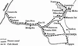 Lucrările la Canalul Dunăre-Marea Neagră au început în vara anului 1949, pe traseul urmat de Valea Neagră, ce traversa Dobrogea de la Est la Vest.[122] La originea construcției Canalului se află solicitarea adresată de Stalin lui Gheorghe Gheorghiu-Dej în 1948, iar scopul acestuia era unul economic doar în plan secundar. Întâi de toate, Canalul Dunăre-Marea Neagră a fost un proiect de inginerie socială, care viza constuirea de noi cadre politice și tehnice. Regimul comunist de la București nu își permitea finanțarea unui asemenea proiect, decizia construirii lui a fost una strict politică și urmărea, pe de o parte, dezvoltarea unui laborator în care să fie creat Omul Nou, construit după chipul și asemănarea doctrinei Marxist-Leninistă.