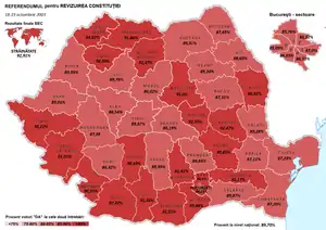 ![]() Harta prezenței la vot pe județe | ||
