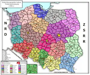 Împărțirea administrativă a Poloniei s-a schimbat de cinci ori după al Doilea Război Mondial. Reformele au loc în ani: 1946, 1950, 1957, 1975 și 1999. Cu excepția reformei din 1975, împărțire a fost compusă din trei tipuri de unități: voievodat (poloneză województwo, plural 2-4 województwa), powiat (plural powiaty) și comună (gmina lub gromada, plural gminy, gromady).