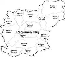 În acest fel, în 1956 regiunea era împărțită în 14 raioane: Aiud, Beclean, Bistrița, Câmpeni, Cluj, Dej, Gherla, Huedin, Jibou, Luduș, Năsăud, Sărmașu, Turda și Zalău, care conțineau 11 orașe, 327 de comune și 1.507 sate, dispuse pe o suprafață totală de 28.000 km2[1]