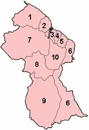 | 10 | Upper Demerara-Berbice | 17.040 | 39.452 | 2,3 | Linden |