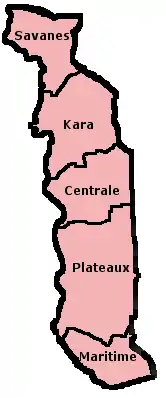Republica Togoleză este divizată în cinci regiuni și un municipiu reședință de stat (Lomé). Regiunile sunt divizate în treizeci de prefecturi.