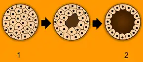 Animalele sunt unice prin faptul că forma globulară a celulelor embrionului timpuriu (1) se dezvoltă într-o formă globulară goală sau blastulă (2).