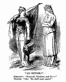 Principala greșeală a lui Bismarck a fost să dea satisfacție liderilor militari și opiniei publice germane prin incorporarea provinciilor de frontieră Alsacia și Lorena. În acest fel, Franța a fost transformată într-un inamic permanent și puternic motivat. Istoricul Theodore Zeldin a afirmat: „Răzbunarea și recuperarea lui Alsaciei și Lorenei au devenit obiectul principal al politicii franceze pentru următorii patruzeci de ani. Faptul că Germania a fost dușmanul Franței a devenit elementul de bază al relațiilor internaționale.” [101] Soluția lui Bismarck a fost transformarea Franței într-o națiune-paria, încurajând regaliștii să lupte cu noua republică și construind o rețea complexă de alianțe cu alte mari puteri – Austria, Rusia și Regatul Unit – pentru izolarea diplomatică a Franței.[102][103] Un element important al politicii externe germane a fost Alianța celor trei împărați, prin care împărații din Berlin, Viena și St. Petersburg își garantau securitatea statelor lor și făceau front comun împotriva Franței.[104]