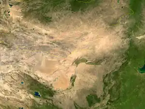 Vegetația este săracă, adaptată la condițiile climatice aride. Speciile tipice de plante sunt:spinul cămilei, saxaulul, sărățica, gipsărița, pelinul negru, mimozele, salcâmul, curmalul.