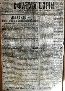 Inițial, Republica Democratică Moldovenească a fost declarată parte a unei viitoare Rusii federale, dar la 24 ianuarie 1918 și-a proclamat independența. În Declarația Sfatului Țării din 2 decembrie 1917 se menționează textual: „Basarabia, sprijinindu-se pe trecutul său istoric, se declară de azi înainte Republică Democratică Moldovenească, care va intra în alcătuirea republicei federative democratice rusești, ca părtaș cu aceleași drepturi.”[2]