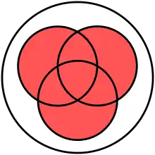 Operațiile pot fi efectuate în orice ordine, iar parantezele pot fi omise fără ambiguitate (adică oricare expresie dintre cele de mai sus poate fi exprimată echivalent ca A ∪ B ∪ C). În mod similar, reuniunea este comutativă, astfel încât mulțimile pot fi scrise în orice ordine.[5]