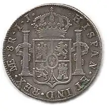 Reversul unei monede de pe timpul lui Carol al III-lea al Spaniei, în 1799.