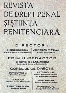 Directorul publicației Revista de Drept penal și știință penitenciară a fost Vespasian Pella, alături de Iulian Teodorescu, iar începând cu nr.8-9/1936, alături de Ioan Ionescu-Dolj.[2]