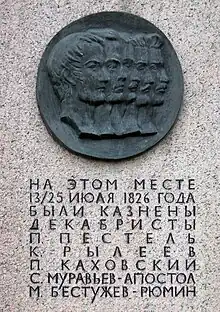 Când cei cinci decembriști au fost spânzurați, s-a întâmplat ceva obsolut neobișnuit. Funiile care au fost utilizate pentru lațuri s-au rupt mai înainte ca vreunul dintre ei să moară.[1] Evenimentul a provocat mișcare de simpatie în mulțimea de privitori. Conform unei tradiții vechi de mai multe secole, orice condamnat care supraviețuia unei tentative de execuție trebuia eliberat. În loc să-i grațieze pe cei cinci, Nicolae I a ordonat confecționarea unor lațuri noi și reluarea execuției. Aceasta a fost ultima execuție publică din istoria Imperiului Rus.