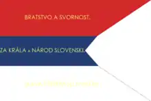 Steagul asociațiilor de voluntari slovaci cu inscripția: „Frăție și unire. Pentru crai și pentru norodul slovac. Slavă tuturor slovacilor!“