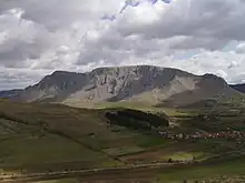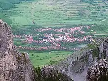 Centrul satului Rimetea și Piatra Secuiului în fundal