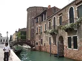 Ponte de l'Abazia (din lemn) care leagă biserica de o calle care duce la Campo San Gregorio