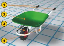 - Două mânere, care sunt extensia arborilor conectați la axul roții.