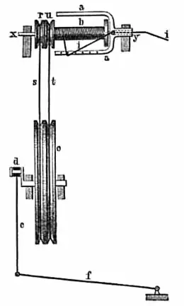- aripa propriu-zisă în formă de U, cu o deschidere de alimentare (y) din metal sau lemn și două brațe de aripă (a). Pe ambele brațe sunt atașate dispozitivele de ghidare pentru firul rezultat (i), care pot fi rânduri de cârlige fixate ferm sau găuri pentru un singur cârlig relocabil sau o bridă glisantă.