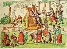 Regele Holly este adesea înfățișat ca o figură din lemn, asemănătoare cu Moș Crăciun modern, îmbrăcat în roșu, și cu Regele Stejarului ca un zeu al fertilității . [57] [58]
