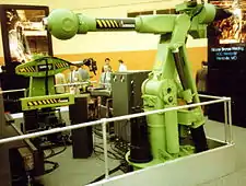 Exemplu de robot industrial automat prezentat la expoziția Robots 85 din Detroit, Michigan