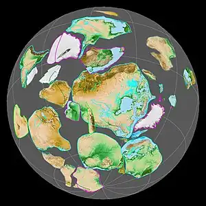 Într-o perioadă de peste 200 de milioane de ani, multe din fragmentele mai mici s-au concentrat spre a forma un nou continent de mari dimensiuni, denumit Laurasia. Laurasia și Gondwana s-au reunit cu circa 200 de milioane de ani în urmă, pentru a forma supercontinentul Pangeea (după alte surse Pangaea).