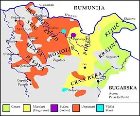 Începând cu prima parte a secolului al XVIII-lea, nord-estul Serbiei a fost populat de români (cunoscuți pe atunci prin exonimul internațional vlahi) proveniți din Banat, părți ale Transilvaniei și Olteniei („Valahia Mică”)[8]. Aceștia sunt denumiți „ungureni” (ungurjani), „munteni” (munćani) și „bufeni” (bufani). În prezent, aproximativ trei sferturi din populația vlahă vorbește subdialectul ungurean. În secolul al XIX-lea, la sud de Dunăre s-au stabilit și alte grupuri de români, cei mai mulți originari din Oltenia („Valahia Mică”)[12]. Aceștia sunt „țăranii” (carani) care formează aproximativ 25% din populația modernă. Din secolul al XV-lea până în secolul al XVIII-lea, un număr mare de sârbi a migrat peste Dunăre, dar în sens invers, stabilindu-se atât în Banat, cât și în Țara Românească. Migrația s-a încheiat odată cu înfrângerea Imperiului Otoman și înființarea regatelor Serbiei și, respectiv, României, în a doua jumătate a secolului al XIX-lea[13].