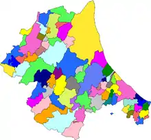 Romagna după cum a fost împărțită între trei regiuni italiene contemporane.