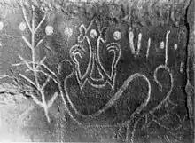 (glifa 280) prezintă protuberanțe caracteristice de fiecare parte a capului, reprezentând probabil urechi sau ochi.