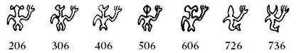 : cifra șase din poziția unităților se indică o figură cu mâna ridicată.
