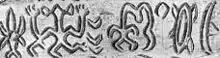, care ar putea însemna îka, „victimă de război”. Mai sunt și alte modele, inclusiv câteva tatuaje remarcate de primii vizitatori și care ar putea fi glife de sine stătătoare. Dar fiind izolate și pictografice, este greu de știut dacă sunt sau nu o formă de scriere.