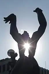 ![]() Centrul orașului Rotterdam după bombardament. Singura clădire rămasă în picioare, deși grav avariată, a fost biserica Sint-Laurenskerk]]. | |||||||