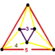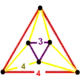 Pentru un 4-politop regulat {p,q,r}, celulele inițiale {p,q} rămân, dar devin separate. Golurile de la fețele separate devin prisme p-gonale. Golurile dintre fețele separate devin prisme r-gonale. Golurile dintre vârfurile separate devin celule {r,q}. Figura vârfului pentru un 4-politop regulat {p,q,r} este o antiprismă q-gonală (numită antipodium dacă p și r sunt diferite).