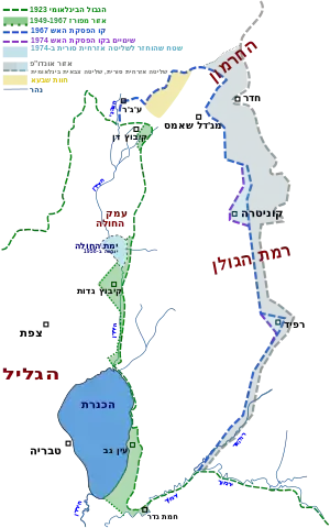 ![]() Mapa Golanských výšin s vyznačením toku Nachal Rakad v pravém dolním rohu | |