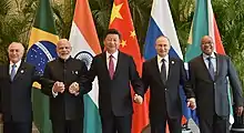 Rusia întreține relații pozitive cu alte țări membre ale SCO și BRICS.[137] Mai recent, țara a întărit semnificativ legăturile bilaterale cu Republica Populară Chineză semnând Tratatul de Prietenie(d) și construind conducta petrolieră transsiberiană(d) și gazoductul Siberia-China, formând astfel o relație specială cu China(d).[138][139] India este cel mai mare client al Rusiei pe piața de echipamente militare și cele două țări au relații strategice și de apărare extinse(d).[140]