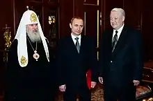 La 31 decembrie 1999, președintele Elțin a demisionat pe neașteptate, lăsând funcția în mâinile recent numitului prim-ministru, Vladimir Putin, care apoi a câștigat alegerile prezidențiale din 2000. Putin a reprimat insurgența cecenă, deși încă mai există violențe sporadice în Caucazul de Nord. Prețul ridicat al petrolului(d) în combinație cu moneda slabă, urmate de creșterea cererii pe plan intern, de consum și investiții au ajutat economia să crească timp de nouă ani consecutivi, îmbunătățind nivelul de trai și crescând influența Rusiei pe scena mondială.[98] După criza economică mondială declanșată în 2008, prețul petrolului a scăzut, și economia Rusiei a stagnat, sărăcia reluându-și creșterea.[99] Deși Putin și-a consolidat un regim autoritar și nedemocratic care suprimă sistematic mișcările de opoziție de orice fel,[100] venirea la putere a lui Putin a coincis cu unele oportunități economice și atitudinea sa fermă împotriva insurgențelor l-a făcut în general popular în Rusia.[101]