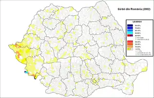 Sârbii locuiesc în principal în regiunile din sud-vestul României, în Banatul românesc, unde constituie majoritatea absolută în două localități: Pojejena, județul Caraș-Severin, (52.09%) și Svinița, județul Mehedinți, (87.27%) , și majoritatea relativă într-o a treia, Socol, județul Caraș-Severin, (49.54%) . Regiunea în care se află cele trei localități este cunoscută cu numele de Clisura Dunării (în limba sârbă: Банатска Клисура (Banațka Klisura).