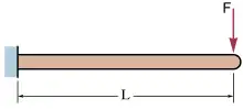La bara în consolă (considerată fără greutate) încărcată cu o forță la capătul liber săgeata elastică și unghiul la capătul liber sunt:[4][5]