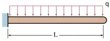 La bara în consolă încărcată cu o sarcină distribuită (putând include greutatea ei) la capătul liber săgeata elastică și unghiul la capătul liber sunt:[4][6]