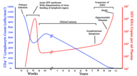 | Simptome | febră[1] Adenopatie[1] diaree[1] letargie[1] slăbire[1] erupție[2] Infecție oportunistă Kaposi's sarcoma[*] limfom peripheral neuropathy[*] transpirații nocturne[*][2] mialgie[2] sore throat[*][2] epuizare[*][2] enlargement of lymph nodes[*][2] mouth ulcer[*][2] frisoane[*][2] |