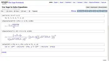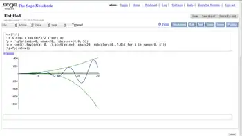- Utilizatorii pot folosi o versiune online a Sage la sagenb.org Arhivat în , la Wayback Machine. sau http://t2nb.math.washington.edu:8080/ Arhivat în , la Wayback Machine., dar cu anumite limitări legate de cantitatea de memorie ce poate fi folosită.