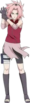 ![]() Sakura Haruno este o kunoichi din satul Konohagakure, Tara Focului și singura femeie-ninja din echipa numărul 7, din care face parte alături de sensei-ul ei, Hatake Kakashi, și de cei doi colegi Naruto Uzumaki și Sasuke Uchiha. | |
