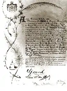 Sigiliu al satului Ocna pe un document reprezentând un șavgău care ține în fiecare mână câte un ciocan de tăiat sarea