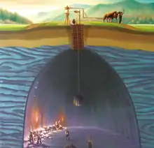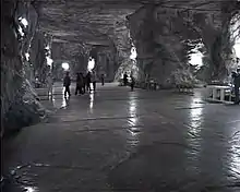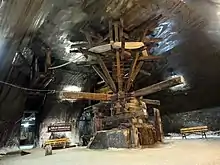 Interiorul ocnei Moldova Veche și ascensorul acesteia |