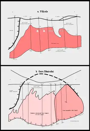 Exploatare prin ocnă trapezoidală la Târgu Ocna, mina Moldova Nouă |