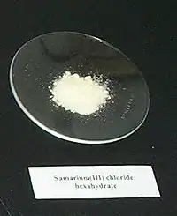 Samariul este unul dintre singurele lantanide care prezintă starea de oxidare +2. Ionii Sm 2+ sunt roșii-sângerii în soluție.[28]