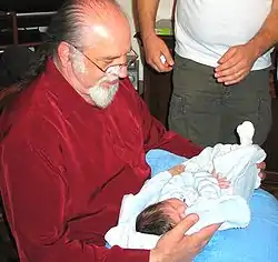 Prunc pe genunchii naşului în timpul ritualului Brīt Mīlāh