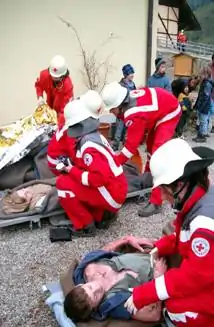 - Udo Helms (Bearb.), Deutsches Rotes Kreuz (Hrsg.): Handbuch für den Sanitätsdienst. 2. Auflage. Eigenverlag des DRK, Bonn 1994, ISBN 3-98-029474-9