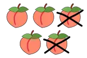 - Dintr-o mulțime, se înlătură (se scade) un număr cunoscut de elemente. Spre exemplu, din 5 mere minus 2 mere, rămân 3 mere.