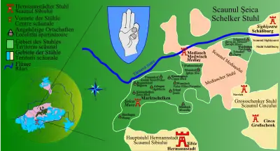 Scaunul Șeica (Schelker Stuhl) avea în componență următoarele localități: