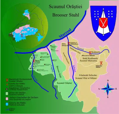 Scaunul Orăștiei (în germană Brooser Stuhl sau Stuhl Broos) avea în componență următoarele localități: