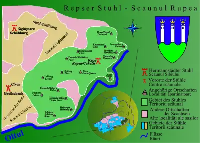 - Rupea/Cohalm, în germană Reps, maghiară Kőhalom.